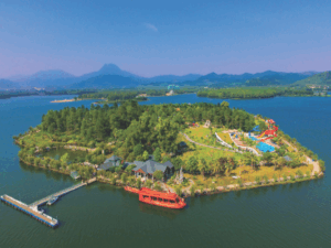 8h30: Quý khách lên thuyền lênh đênh sóng nước giữa một biển hồ mênh mông, thuyền cập bến đảo Ngọc. Quý khách lên đảo Ngọc tham quan, du ngoạm và chụp những bức ảnh lưu giữ những khoảnh khắc đẹp nhất của chuyến đi.